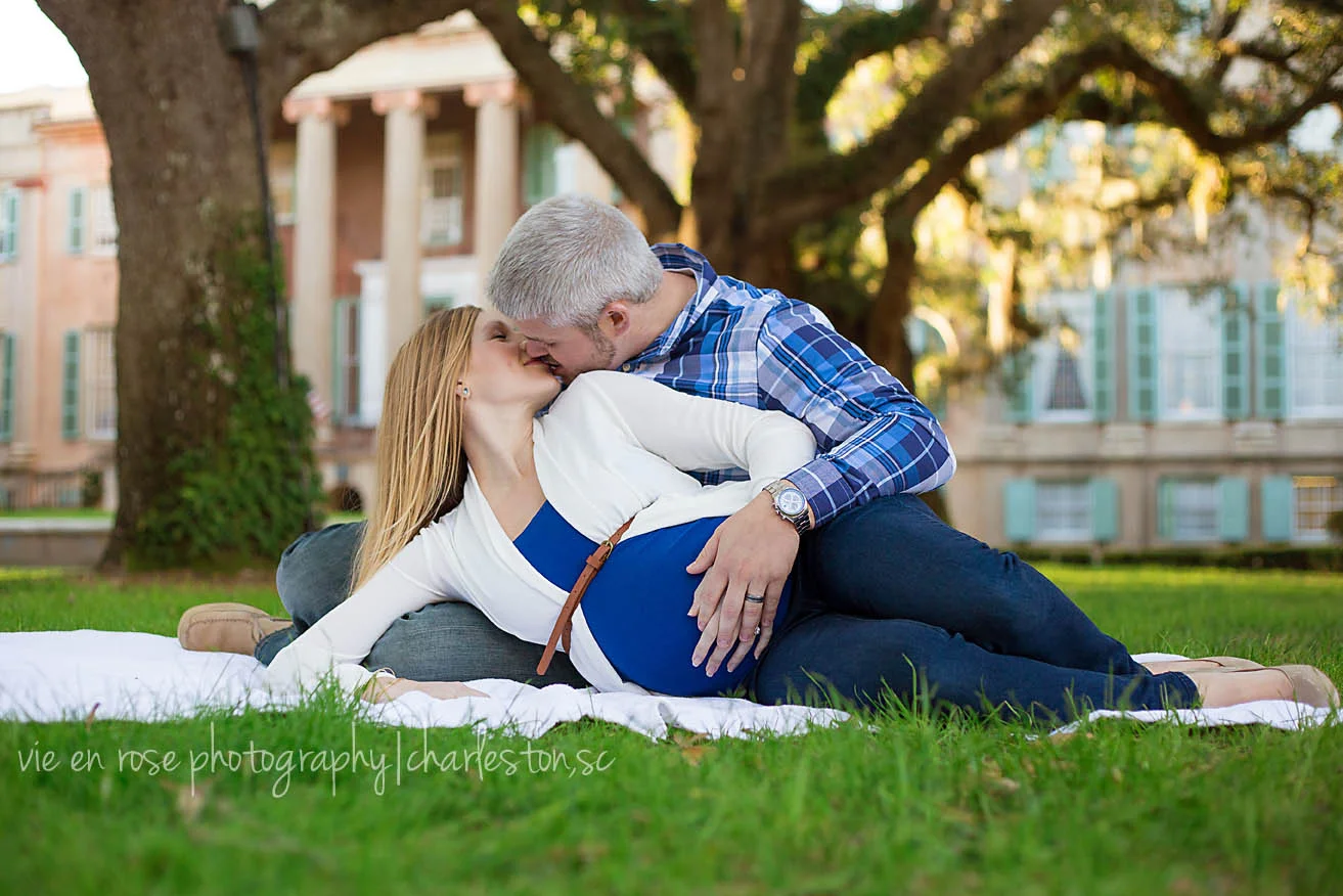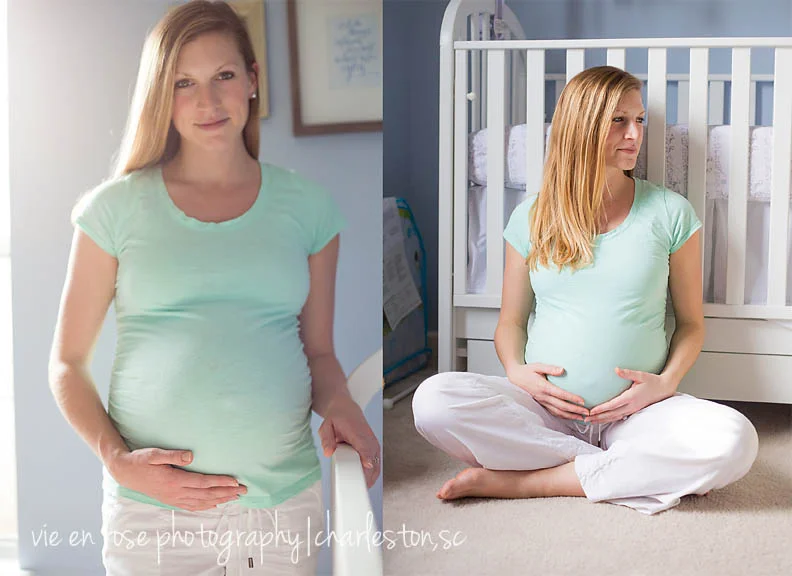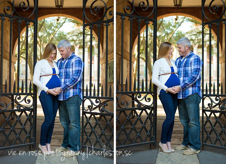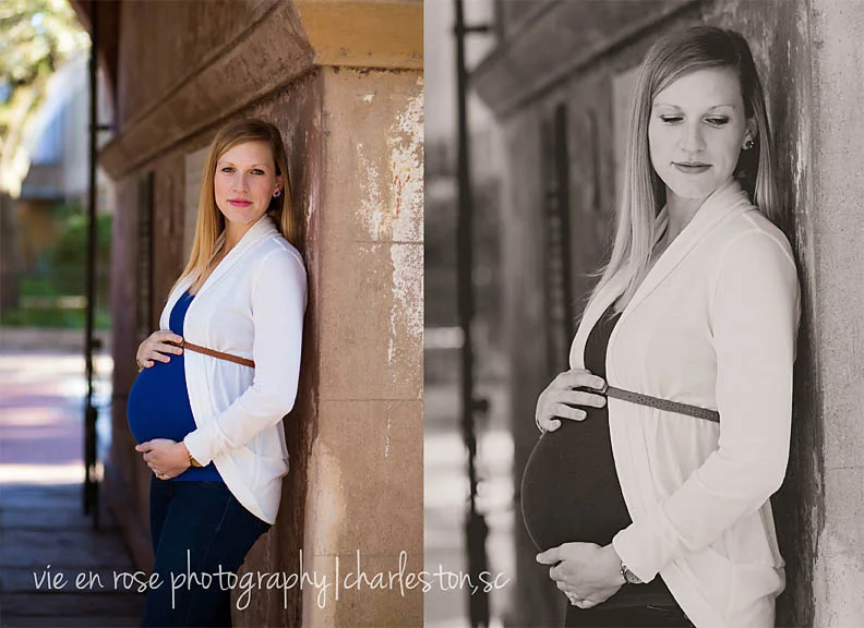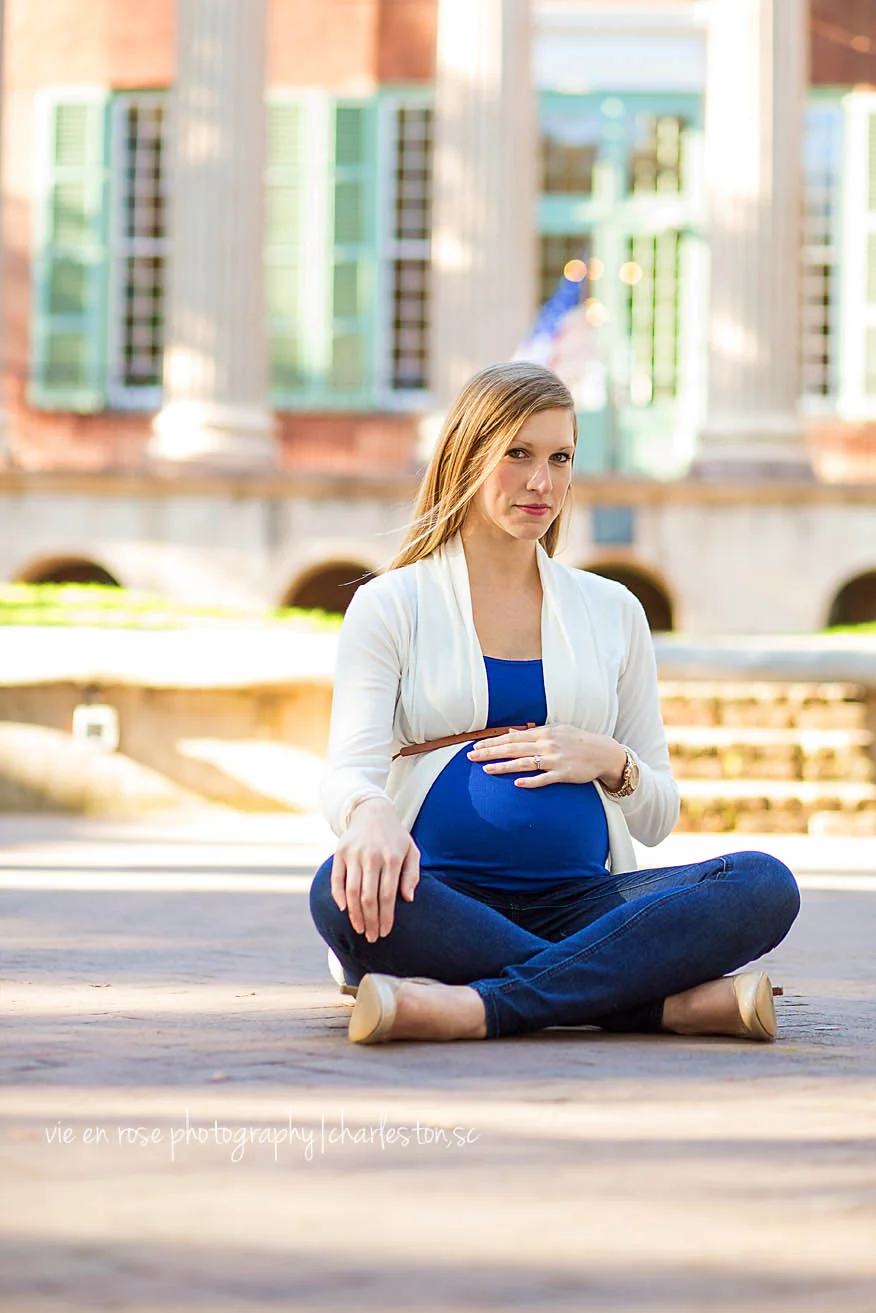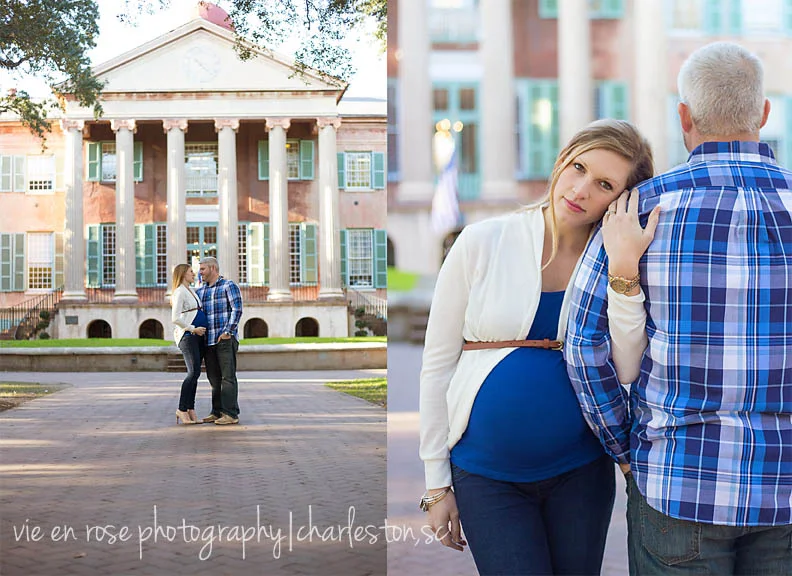 When she told me this summer that she and her hubby, Ed, were expecting, I think I literally jumped up and down. When she asked me to do her maternity photos, I reacted the same. We opted to split her 3 hour maternity session so that we could do some on location at the Cistern-CofC and some in her own home. After I had suggested CofC, I discovered that she actually had her bridal portraits done there.