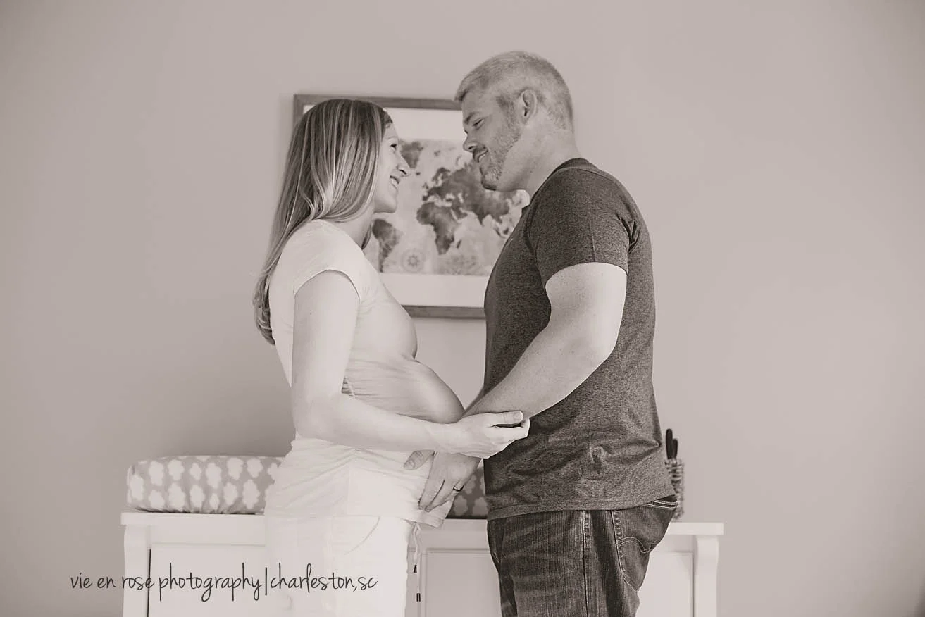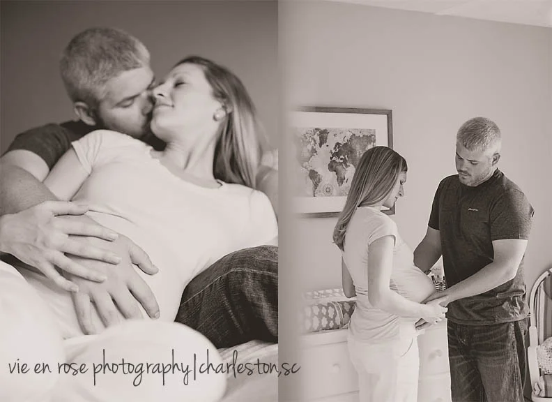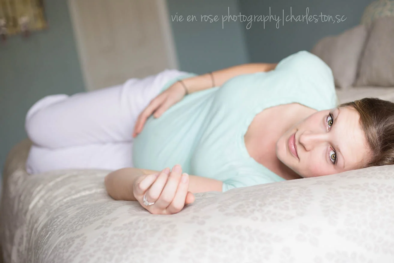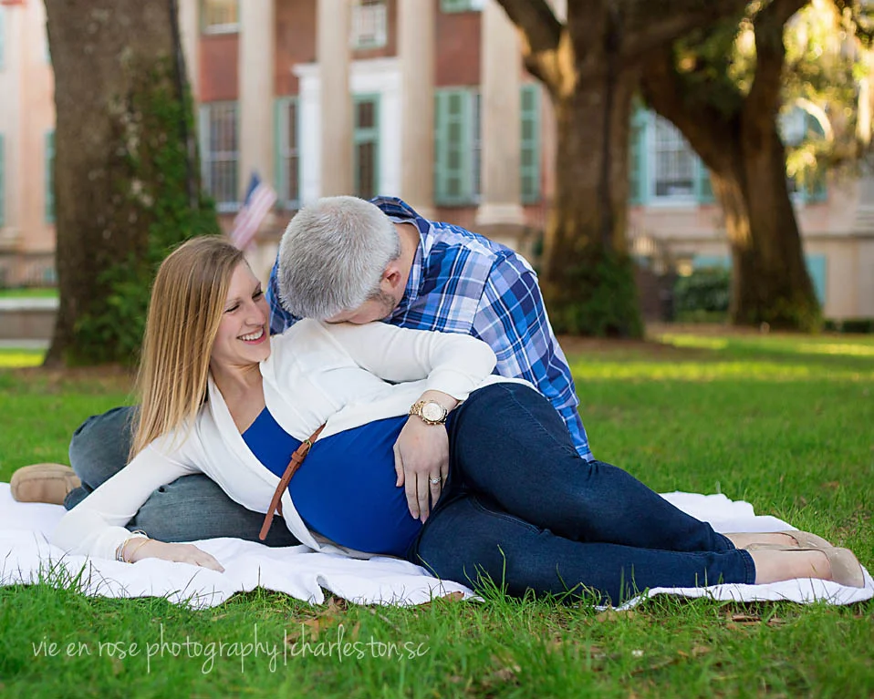 When she told me this summer that she and her hubby, Ed, were expecting, I think I literally jumped up and down. When she asked me to do her maternity photos, I reacted the same. We opted to split her 3 hour maternity session so that we could do some on location at the Cistern-CofC and some in her own home. After I had suggested CofC, I discovered that she actually had her bridal portraits done there.